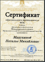 1998 г. - окончила курс специализации по семейному консультированию при ИППиП, расширив, таким образом, круг консультируемых проблем, который охватил процессы семейных взаимоотношений клиентов.